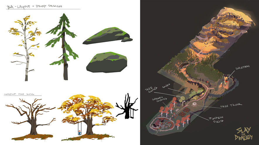 Slay the Dragon project is currently under development. It is an isometric hack and slash game that is planned to be released on Steam in January 2021. I was fortunate enough to become an Art Director of this project, which gave me the responsibility of establishing our art style, guiding our visuals and providing our team with feedback. Apart from visual development, I have been helping out with asset modeling, texturing, level and game design. These are some of the concept pieces which helped to shape the look and feel of our game.